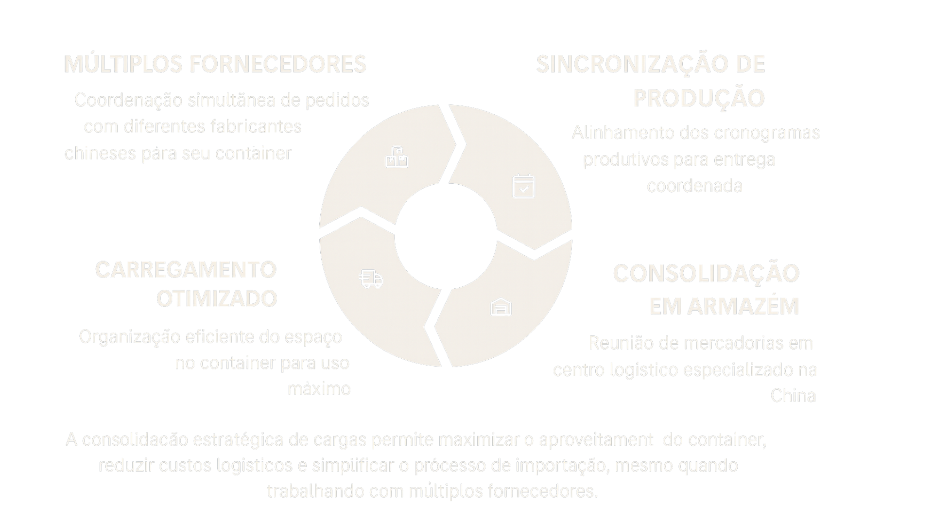 Impulsione sua empresa com uma assessoria especializada em importações da China. Se o seu negócio fatura acima de R$ 100 mil por mês, você terá acesso a um suporte completo: desde a criação da sua marca e diferenciação de produtos até a chegada do seu primeiro container com segurança — e com crédito facilitado.